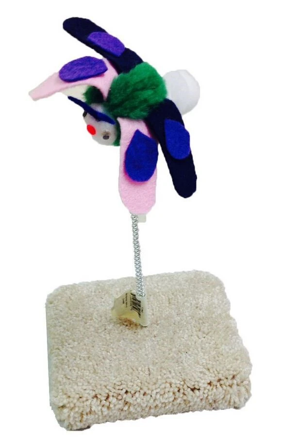 Cette Amuse Chat Papillon est fait d’une petite base de tapis carré et d’un ressort au bout duquel repose un papillon amusant!
