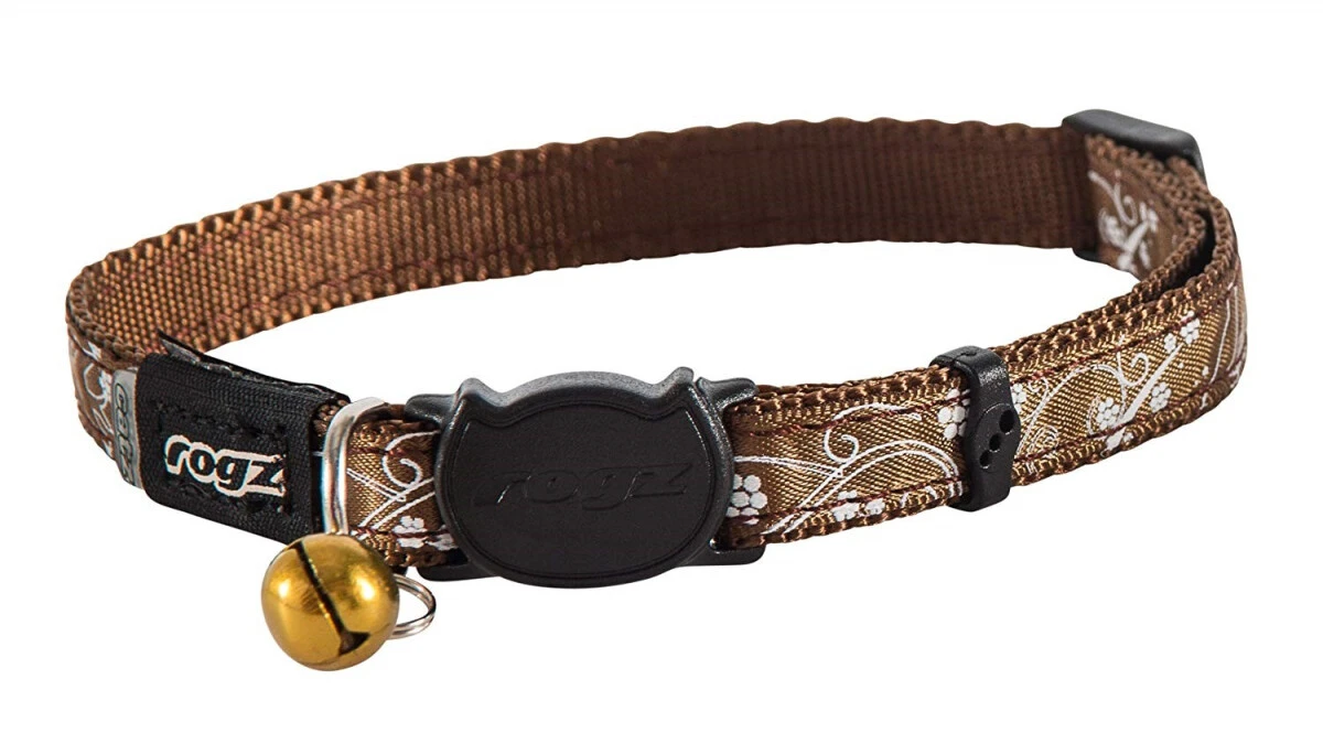 Voici le très joli collier pour chats de Rogz, qui est très pratique puisqu’il est réglable au poids de votre chat. Il est fait en nylon et est très résistants. Le collier est brun et les petits motifs floraux qui sont imprimer sont super discret, il est aussi munis d’un petit grelot. Le fermoir en plastique est aussi très sécuritaire.