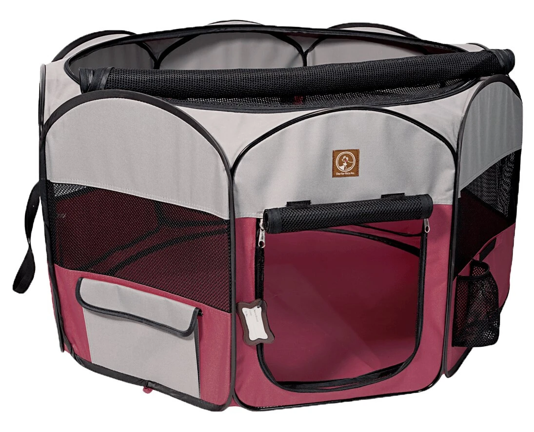 Enclos Pliant En Tissu Pour Animaux Fushia Et Gris – One For Pets
