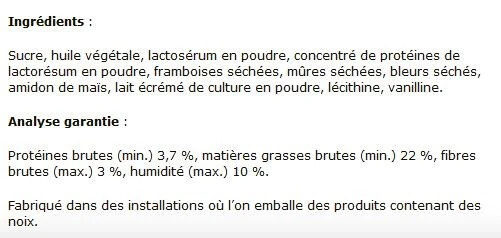 Votre cochon d’inde raffolera de cette petite collation au Baies Sauvages de Living World. Chaque bouchée a été enrichie de vitamines et minéraux, dont la Vitamine C, qui est essentielle pour votre petit animal. Les cobayes ne produisent pas la Vitamine C par eux-mêmes, il faut donc leur en donner en suppléments. Les régals aux baies sauvages de Living World son facilement digestible et peuvent être donner quotidiennement. Des vrais fruits ont été introduits dans la recette, on y trouve en autre des framboises, des mûres et des bleuets.