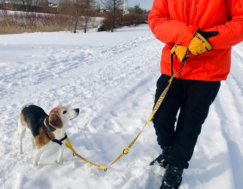 La laisse jaune multifonction 7-en-1 « BESOIN D’ESPACE » pour chiens Beli Concept est une laisse pratique et essentielle à tous les chiens en entrainement ou qui ont besoin d’espace. Elle a 2 poignées dont la principale est rembourrée de néoprène pour un confort optimal. La longueur est réglable à 3 positions et les anneaux près des poignées permettent d’y attacher un sac de ramassage, un bol d’eau ou encore tout accessoire de marche. Elle peut donc être utilisée comme laisse de promenade standard, être raccourcie au besoin ou encore portée autour de la taille. La laisse multifonction jaune 7-en-1 « BESOIN D’ESPACE » pour chiens Beli Concept comprends aussi des mousquetons pivotants qui éviteront que la laisse s’enroule sur elle-même.