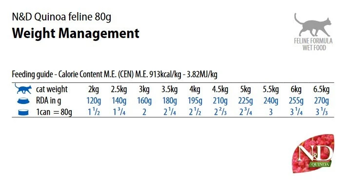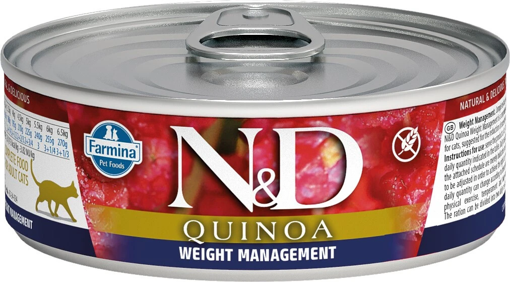 La nourriture en boîte Farmina Quinoa contrôle du poids à l’agneau est succulente, naturelle et ne contient aucun grain. Les ingrédients contenus dans les conserves Farmina sont ajoutés crus et cuit à la vapeur une seule fois. Ce procédé unique fait en sorte de préserver les caractéristiques sensorielles et nutritionnelles pour votre chat. Cette recette, formulée par des vétérinaires en Europe, repose sur plus de 50 ans d’innovation en matière de nutrition animale. Elle ne contient pas de céréales, de sucre, de sous-produits, de colorants, d’OGM ni d’agents de conservation artificiels. Il s’agit d’un repas complet et balancé qui est sous forme de morceaux dans un bouillon que les chats adorent tant.