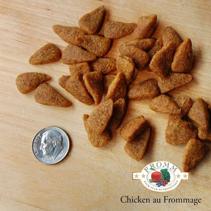 D’inspiration française, la Fromm Four-Star recette de poulet au fromage contient des ingrédients frais tel que du poulet, des légumineuses, des légumes et des fruits frais. C’est une nourriture sans grains, sans patates, sans sous-produits et sans gluten ajouté. La Fromm Four-Star recette de poulet au fromage est riche en acide gras oméga qui aide le système immunitaire, le pelage et les facultés cognitives. Elle convient aux chiens aux goûts distingués et elle contient des pré-biotiques ainsi que des probiotiques afin d’assurer une digestion optimale. La Fromm Four-Star recette de poulet au fromage est interchangeable avec les autres variétés Fromm Four-Star sans avoir à faire de transition.