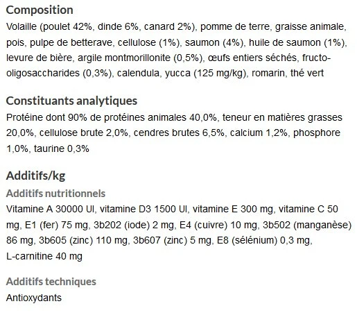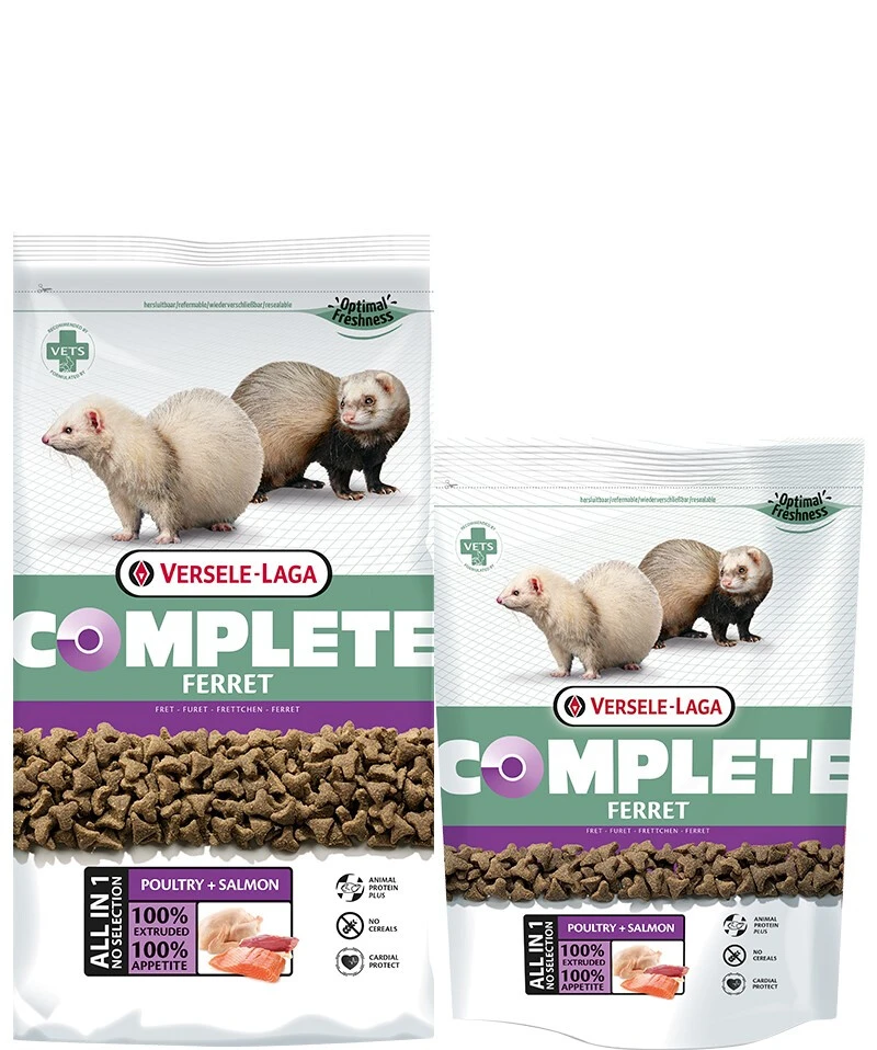 Contenant 90% de protéines d’origine animale dont du poulet et du saumon, la nourriture pour furets Ferret Complet de Versele-Laga est sans céréales et évite le comportement alimentaire sélectif grâce aux granulés tout-en-un. Elle contient également de la taurine qui contribue au bon fonctionnement des muscles du cœur. La nourriture pour furets Ferret Complete de Versele-Laga lutte contre les odeurs désagréables. Parfait en tout point pour votre furet.