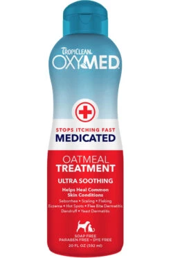 Le traitement médicamenté pour animaux Oxy-Med de TropiClean est conçut pour prévenir les hot-spots, la peau sèche et la séborrhée. C’est un soin très apaisant et est formulé pour arrêter les démangeaisons. Le traitement médicamenté pour animaux Oxy-Med de TropiClean contient des Alpha Hydroxys. Ils pénètrent plusieures couches de peaux et nettoyent les pores. Votre animal aura une peau et un pelage sain grâce aux vitamines et acides gras oméga-3 que contient Oxy-Med médicamenté.